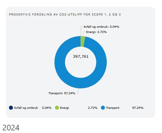 Bildet over viser Takstnett sitt totale CO2-utslipp i 2024.